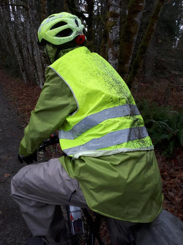 Adrien’s green poncho and vest combination served all these purposes in one! Although, it wasn’t overly aerodynamic.