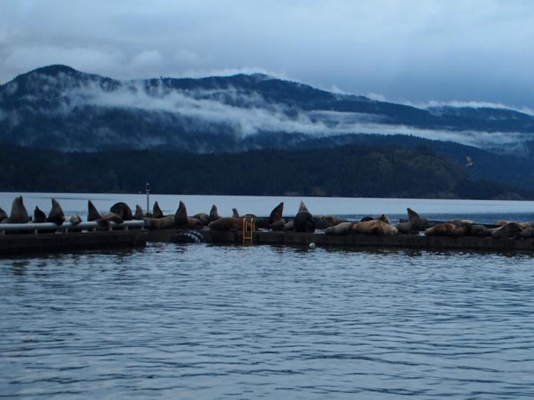 The attraction of Cowichan Bay were the sea lions from California that spend their winter on the wharf. They enjoy it quite loudly… so loudly that our hotel offered earplugs!