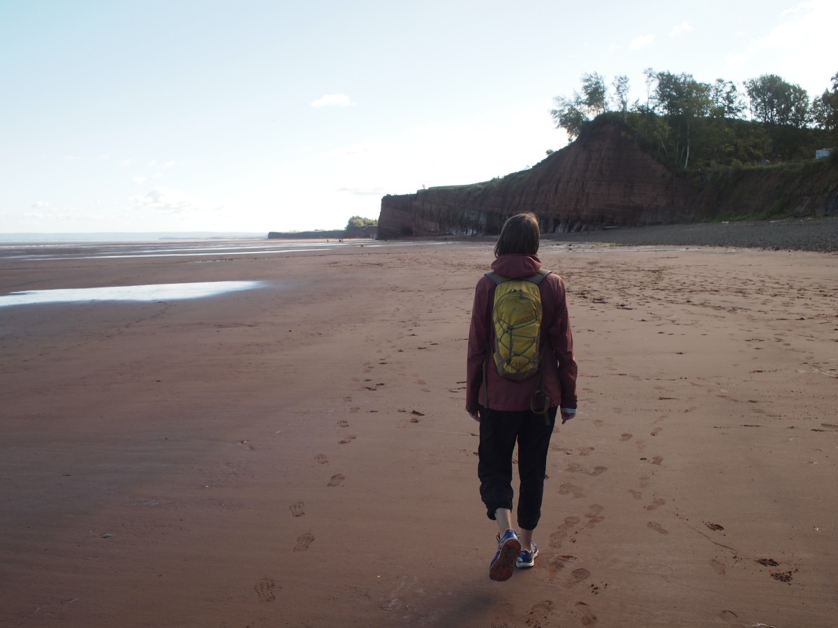 The last stop of our trip was Blomidon Provincial Park. We didn’t have much time before needing to return the car, but the sun was glorious and Justine knew it would be low tide. She got her doctorate researching the Bay of Fundy tides, so she is a bit of a geek on the subject!