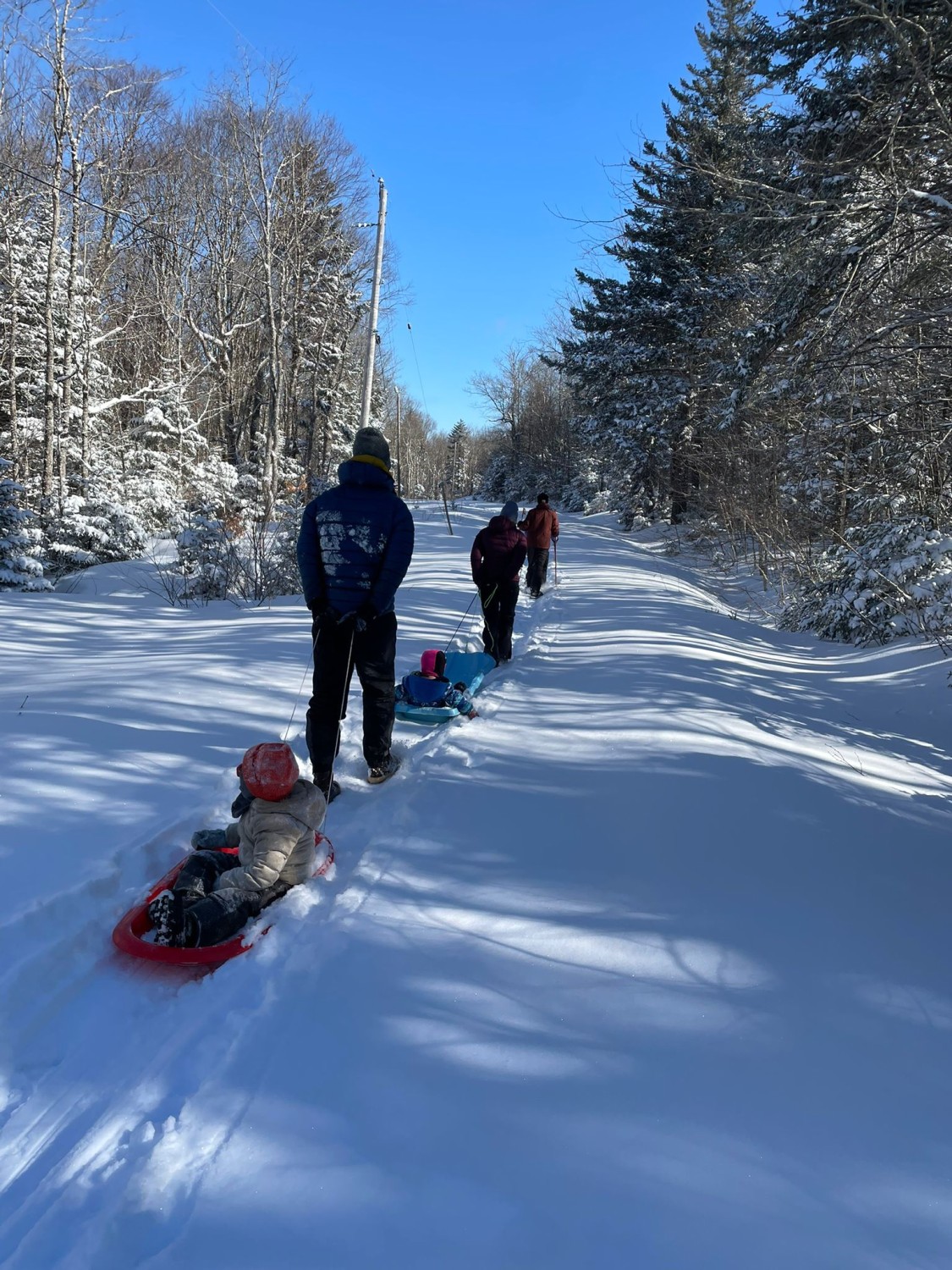 And, we finally got the perfect winter adventure we were craving. We had 20 cm of fresh snow on Friday and a beautiful bluebird day on Saturday. We went snowshoeing, sledding, cross-country skiing, and we roasted marshmallows and played games. It was glorious.
