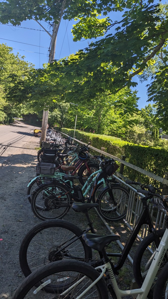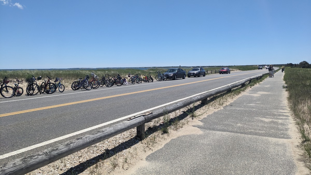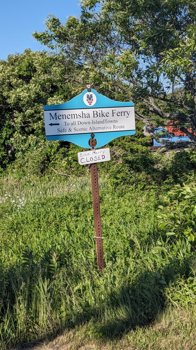 We then biked to the mouth of Menemsha Pond, hoping we could take the bike ferry to cross to the other side. How cool would that be?! Unfortunately, on the way there, we saw a sign that said that the ferry was closed so we rushed back to catch the bus. [The website says that it opened on June 30th, 2024 and operates from 9-5]