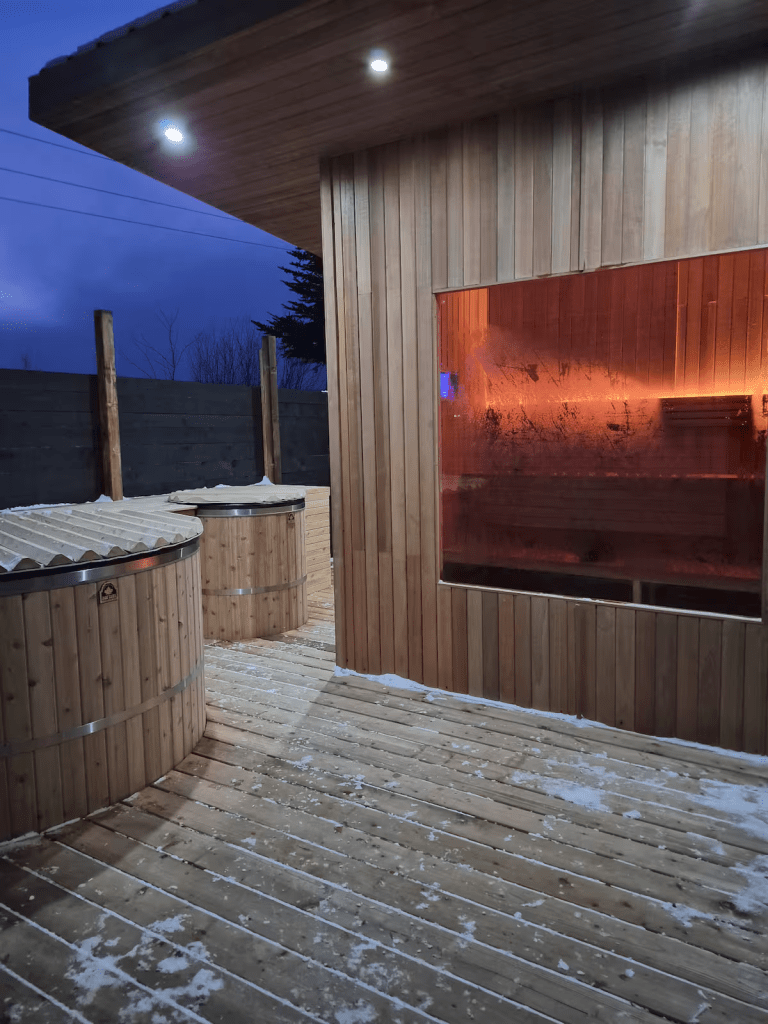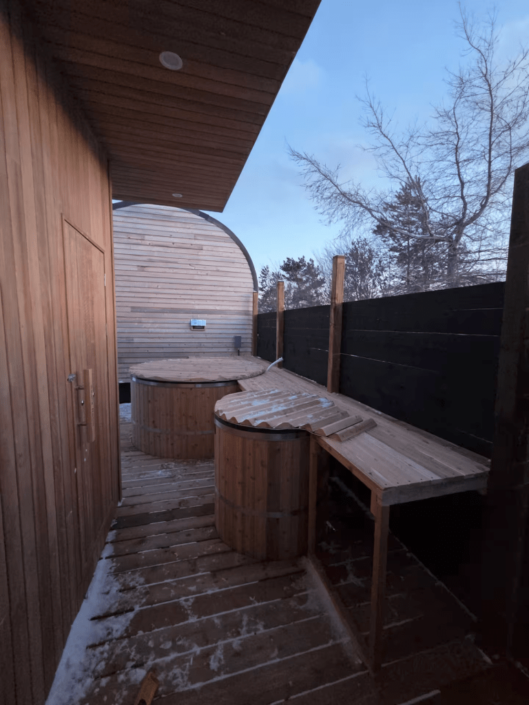 In our search for accommodation in the area, we came across some chalets and a Nordic Spa Retreat just 7 km south of the park. We decided not to stay at the chalets because the Kouch Chalets was just so convenient, but we booked a 2 hour private spot at the Nordic Spa which included a sauna and hot tub. There is also a cold dip on site, but it wasn’t operational when we were there. For the ‘cold’ part of a nordic spa, we just needed to stand outside in our bathing suits for 2 minutes!