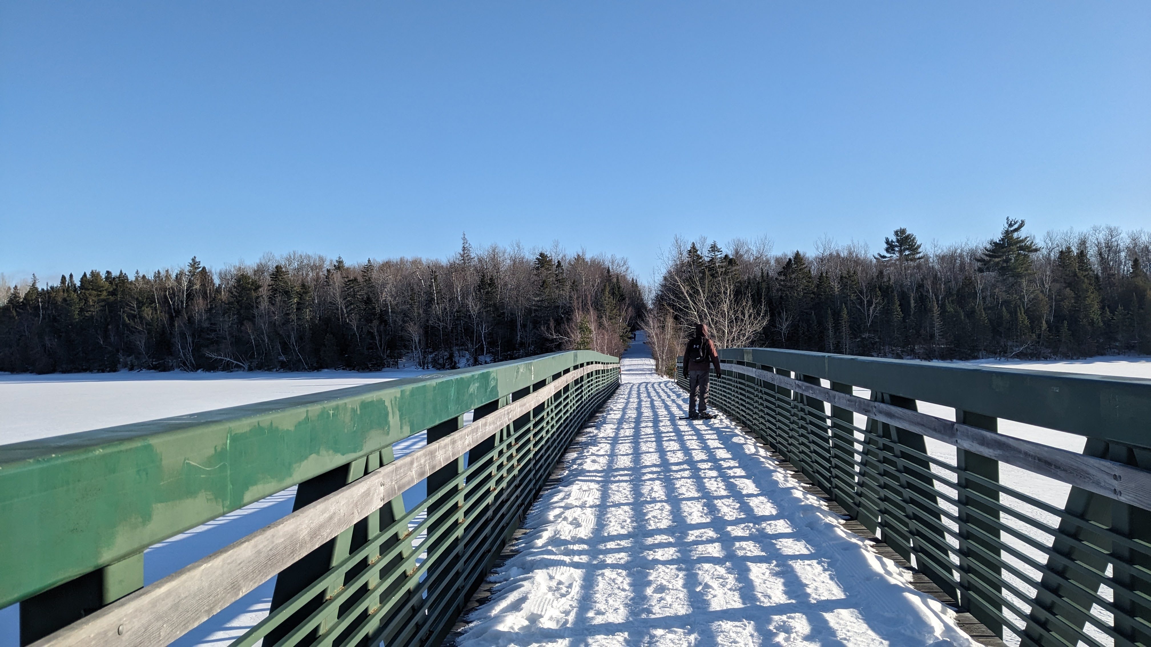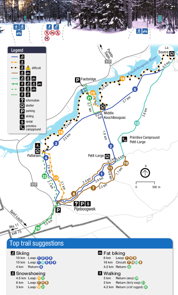 - We did a short 30 minute, 2.4 km snowshoe along the Kouchibouguac river. It was a short out and back because we were limited in time. The trail was pretty packed down and easy to navigate, even with tired legs. We had wanted to do the Claire-Fontaine trail because it was a loop of just the right length with lots of views along the water, but the parking lot wasn’t cleared. So it is probably best to stick to the trails indicated on the winter map above.