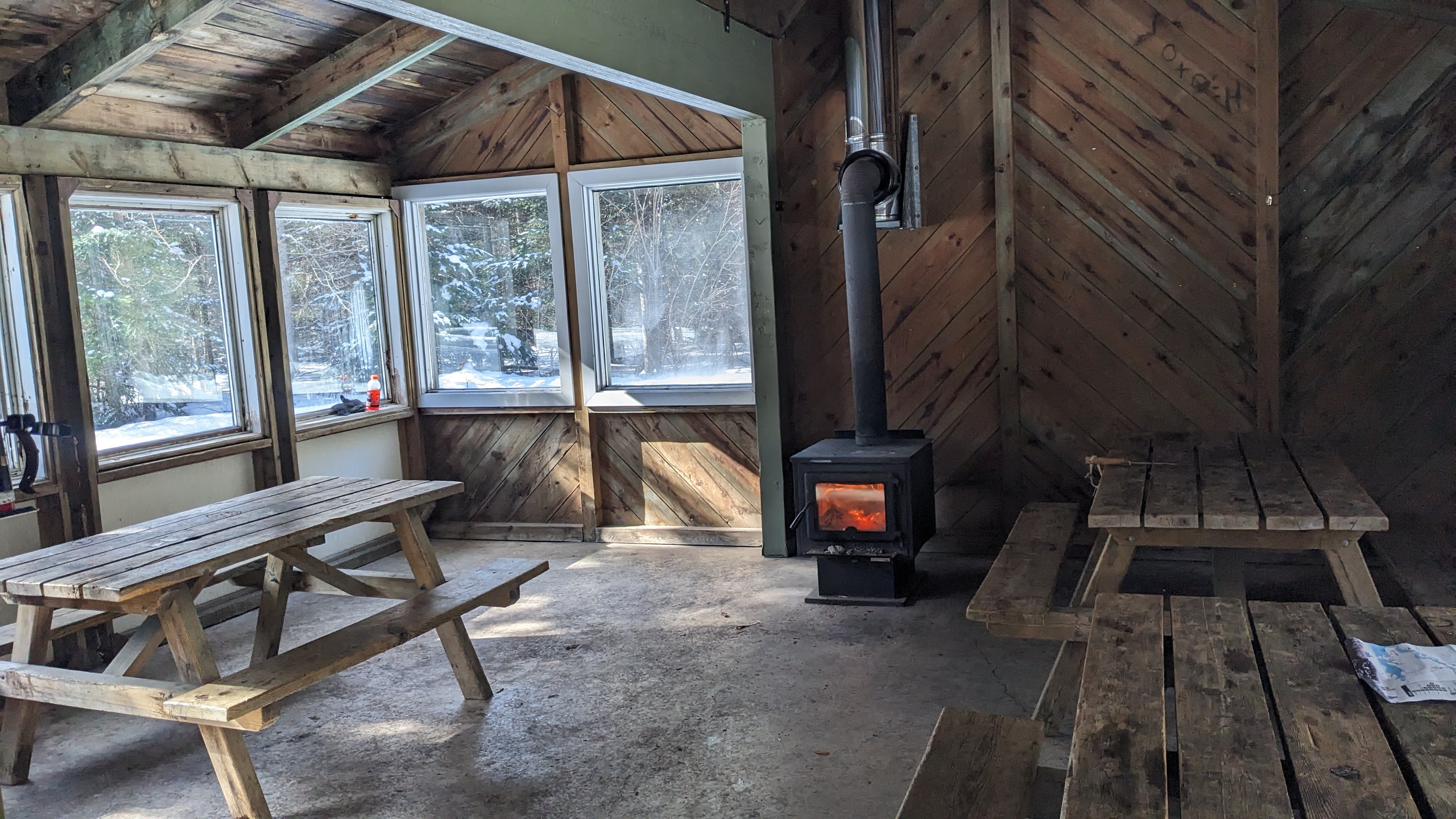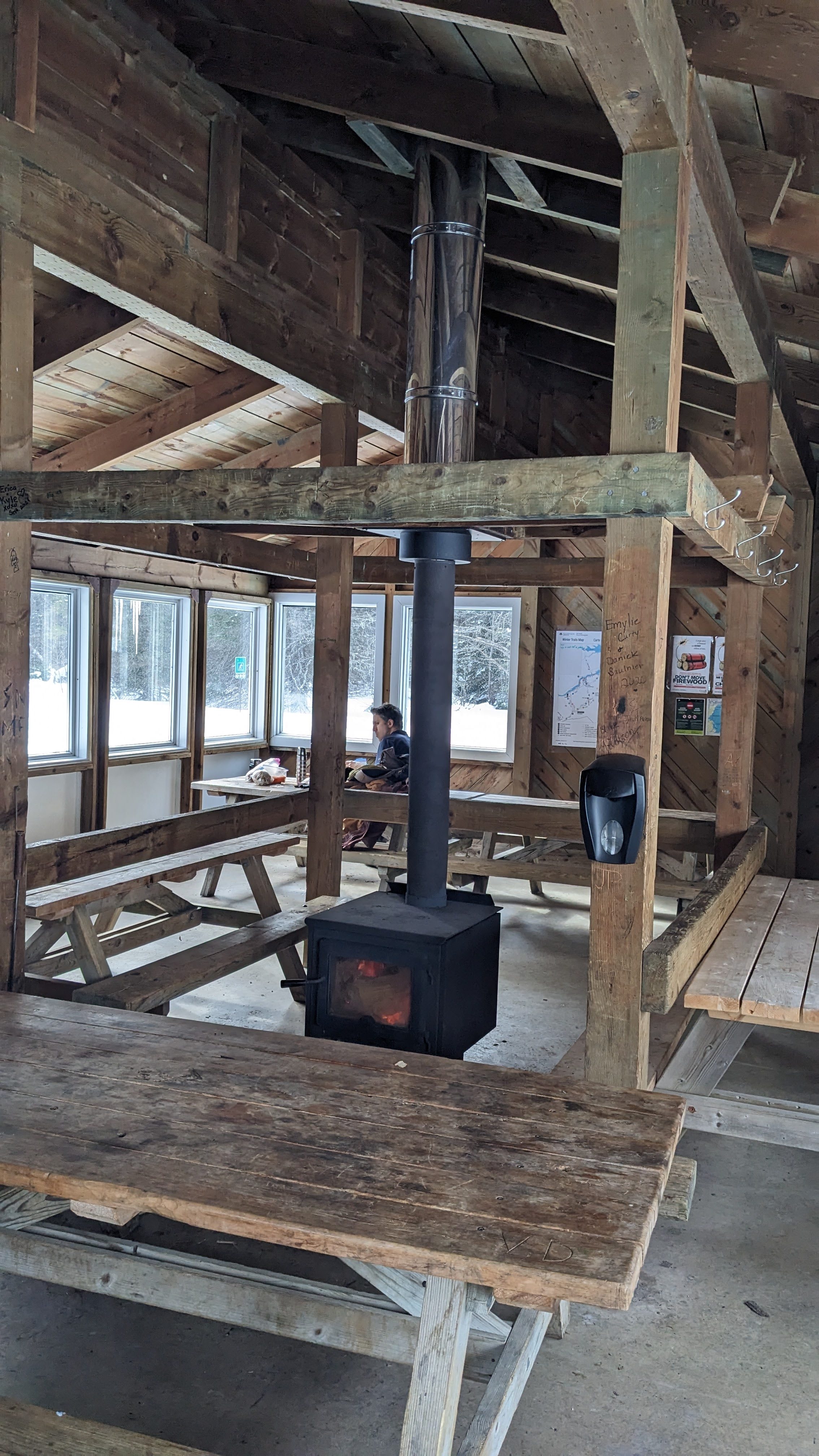 One of the highlights of the park were several rustic shelters at various points along the trail network. These buildings were unlocked and free to use. They all had a fireplace, free firewood and several picnic tables. Many also had pit toilets next to them. They were great spots to stop and take a break.