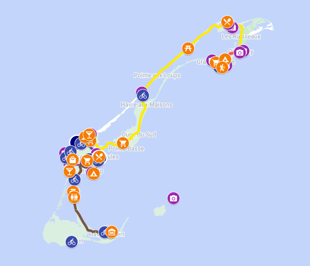 A 6-day bike camping trip on the Magdalen Islands (Iles de la Madeleine) as part of a larger memorial ride. We biked from one end to the other, but had some help from the local bus. We covered 170km in total and had a great time taking in the spectacular views.